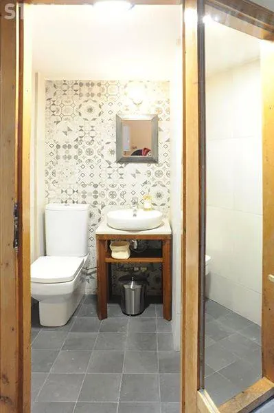 Practic ”apartamentul” (conform DEX, apartament este o locuință cu mai multe camere), are o singură încăpere care are rolul de bucătărie, living și dormitor. Baia este construită sub ”dormitor”.