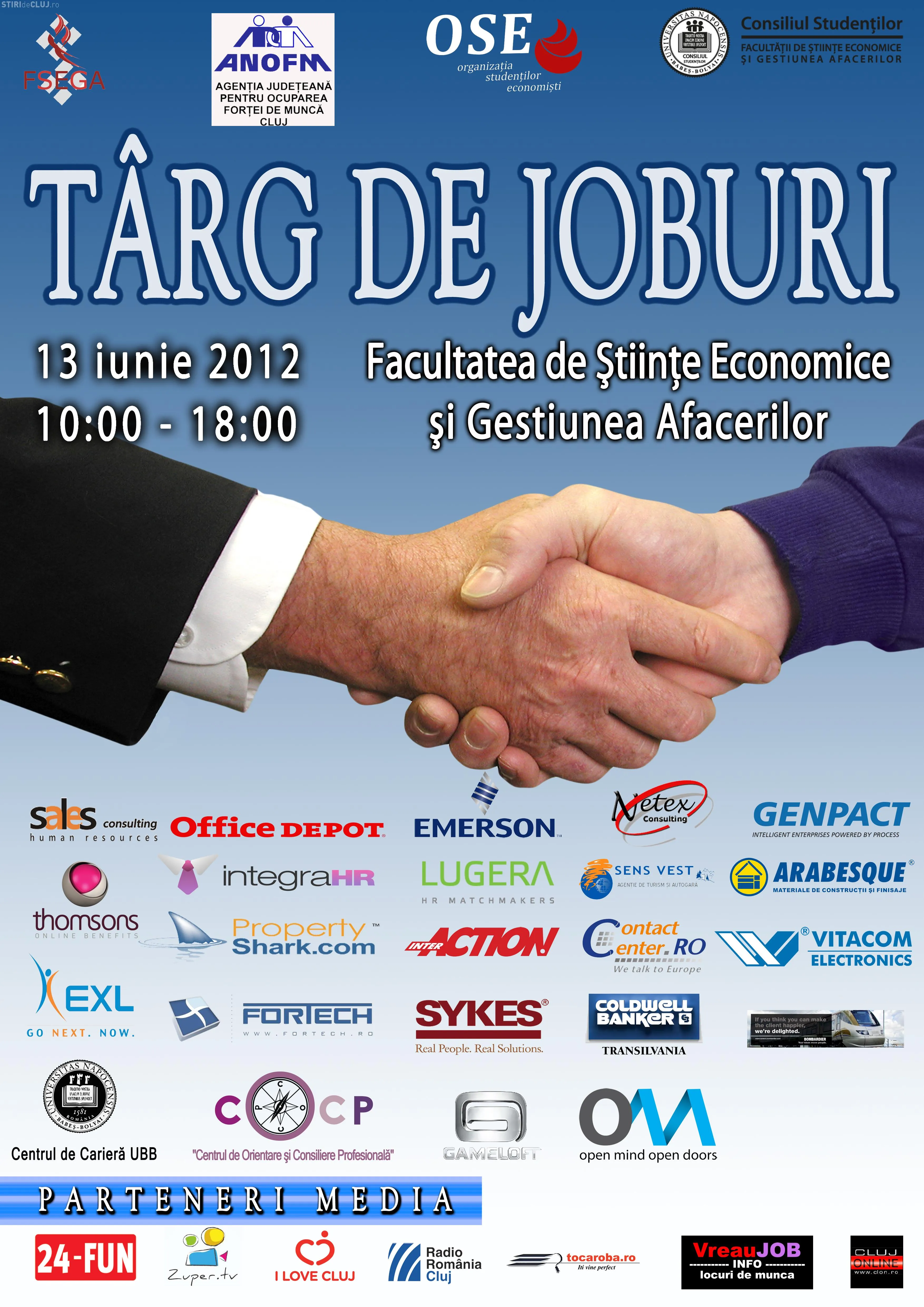 Un targ de joburi va avea loc miercuri, 13 iunie, intre 10 si 18, la Facultatea de Stiinte Economice si Gestiunea Afacerilor (FSEGA) din Cluj-Napoca.