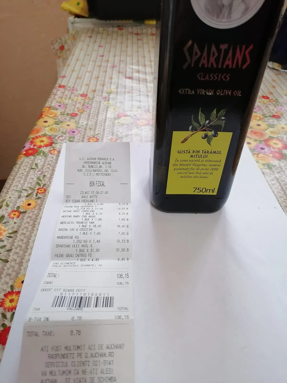 Un clujean a cumpărat un ulei de măsline de la Auchan Iris, iar acasă s-a trezit că a plătit prețul întreg.