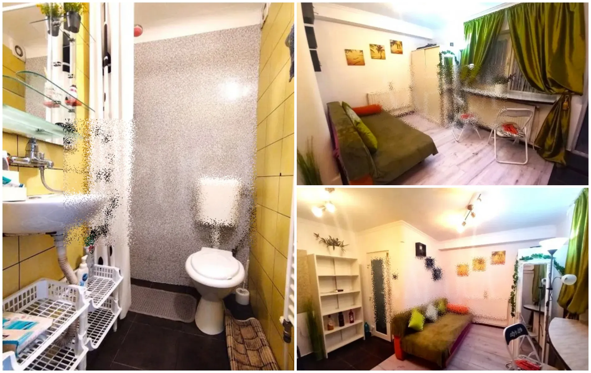 „Garsoniera se află la demisolul unei case și dispune de o suprafață utilă de 10 mp, compartimentat astfel: cameră, baie, hol, spațiu de depozitare”, este descrierea oferită de agenții imobiliari.