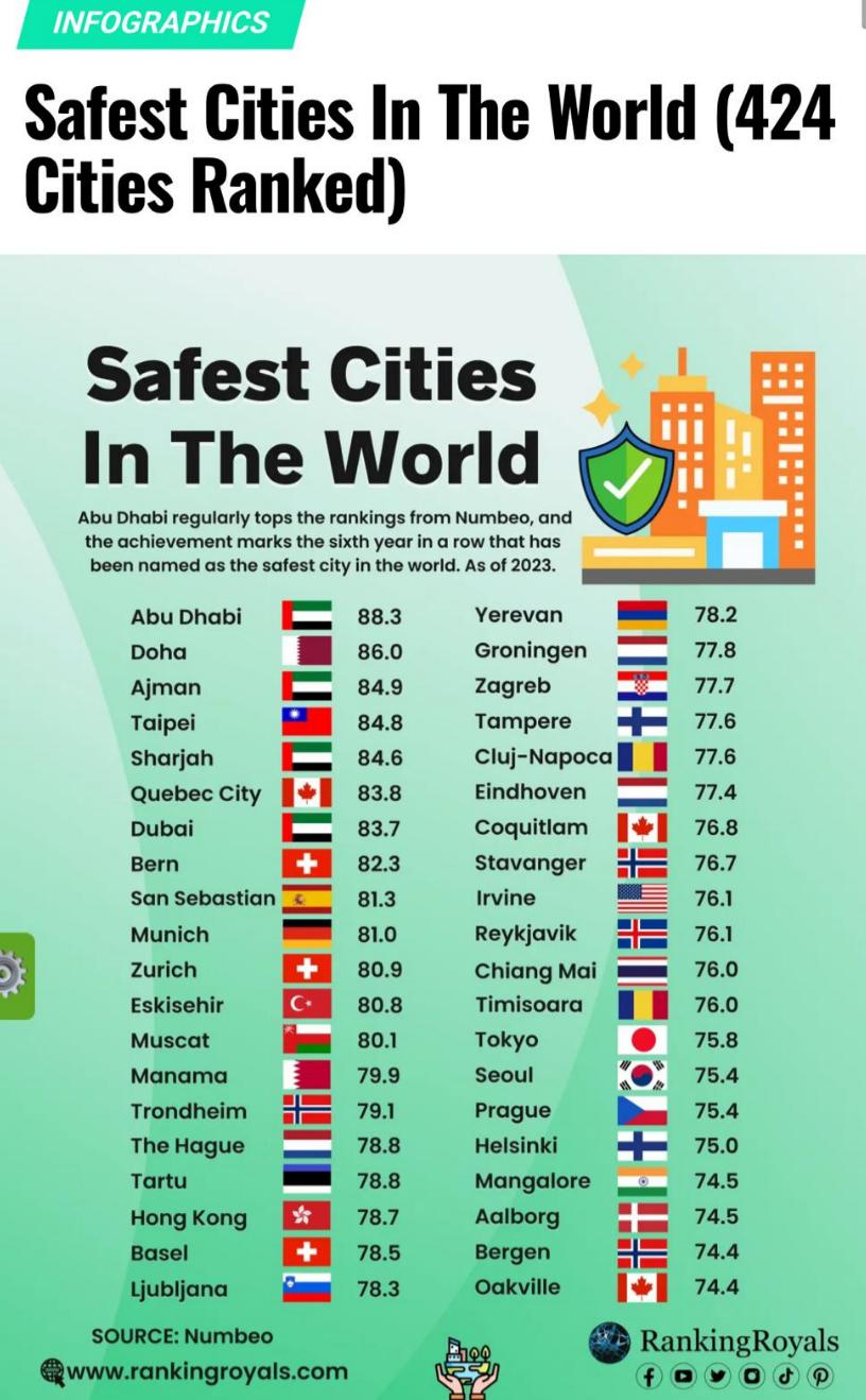 Mai mult decât atât, în întreg clasamentul, doar două orașe din România au reușit să ajungă în top: Cluj-Napoca și Timișoara, ambele remarcându-se printr-un nivel scăzut al criminalității și printr-o percepție publică pozitivă asupra siguranței în spațiile publice.