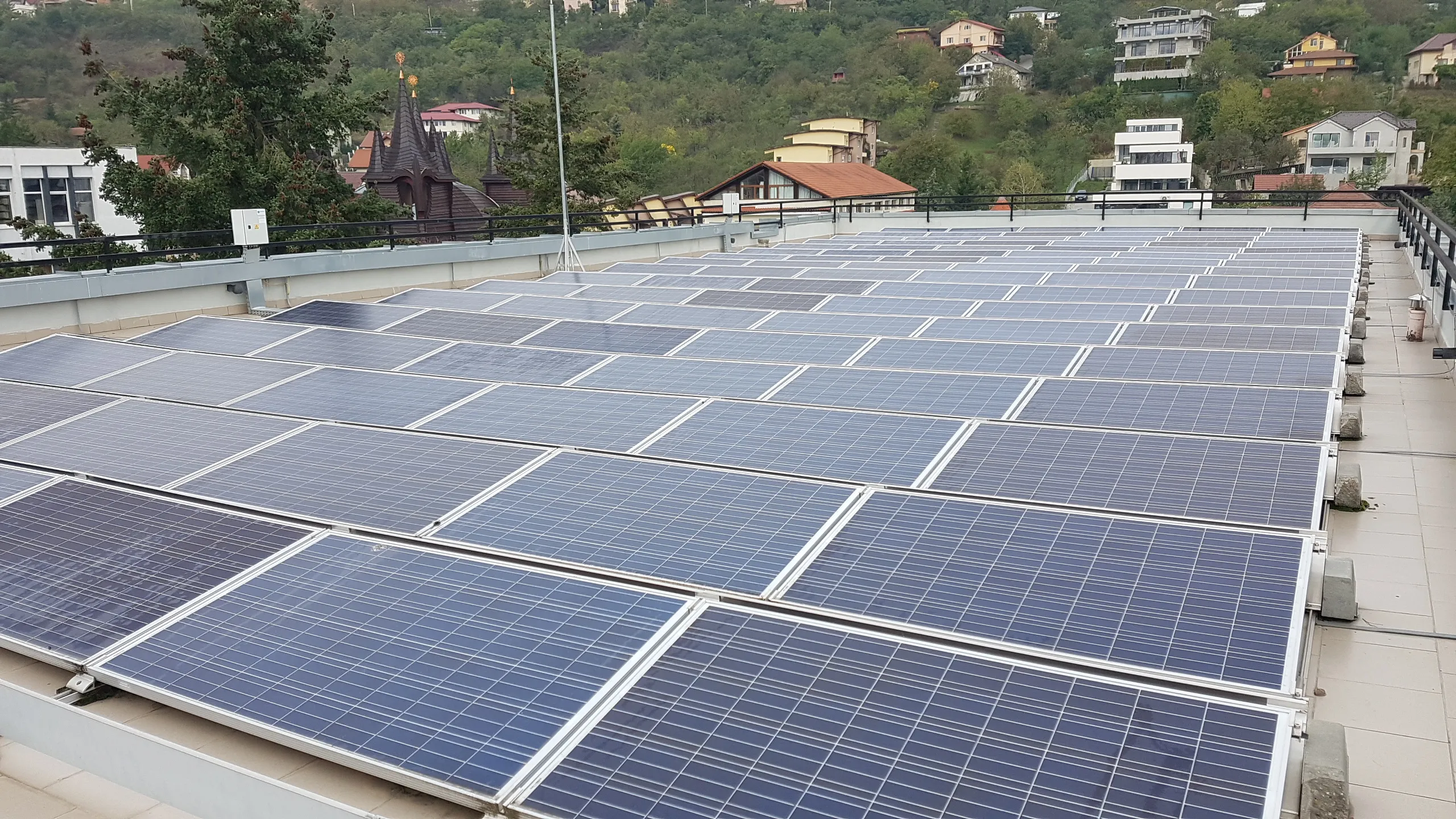 Oana Raita: Ați văzut că avem o monitorizare continuă a energiei verde de aici. Trebuie să menționez că aceste panouri nu sunt într-o poziție ideală, dar totuși produc chiar în condiții în care avem zile noroase. Încercăm și aici să alimentăm clădirea, dar avem și conexiune la rețeaua electrică.