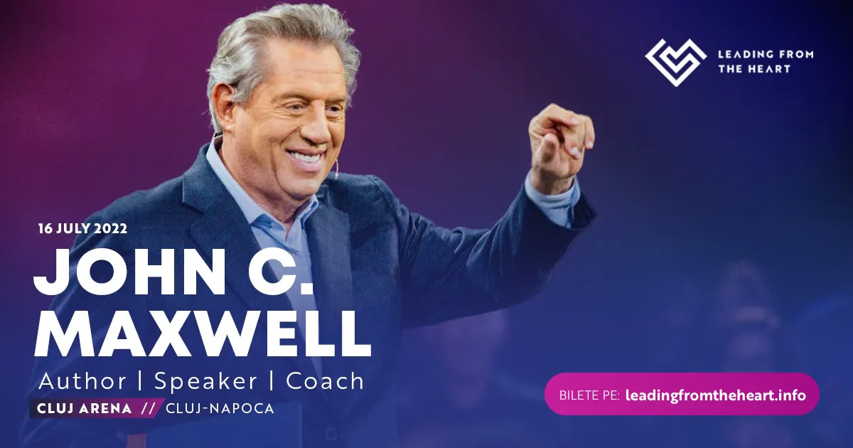 Managerii, antreprenorii și tinerii profesioniști sunt așteptați pe 16 iulie în Cluj-Napoca, pe Cluj Arena, la conferința „Leading from the heart”, susținută de expertul mondial în business și leadership Dr. John C. Maxwell. Mediul de afaceri din România este provocat să regândească, în contextul post-pandemic și al incertitudinii economice și sociale, felul în care managementul echipelor și al oamenilor poate deveni soluția pentru un business eficient.