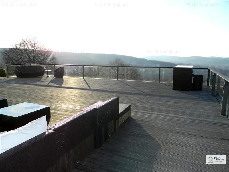 Casa oferă aproape tot ce va puteti imagina in materie de dotari: piscina interioara incalzita, sala de sport, sauna, jacuzii, terasa langa piscina, terasa pentru petreceri de 150 mp cu panorama catre oras, semineu, bucatarie insula, birou, camera de oaspeti, foisor, debarcader, minibar langa lac si multe altele care asteapta sa le descoperiti la fata locului.