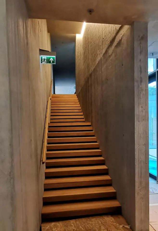 ”Interiorul clădirii surprinde plăcut ochiul printr-un joc măiestros al texturii și luminii. Volumetria creează o serie de spații interioare care invită lumina la un dialog între exterior și interior, senzația vizitatorului fiind una foarte plăcută. Combinația de texturi și materiale (beton aparent, lemn, metal și minunata piatră de Viștea) pune în evidență și mai mult spațiile interioare pline de lumină. Că să rezum în câteva cuvinte: este ceea ce trebuie! Felicitări încă o data!