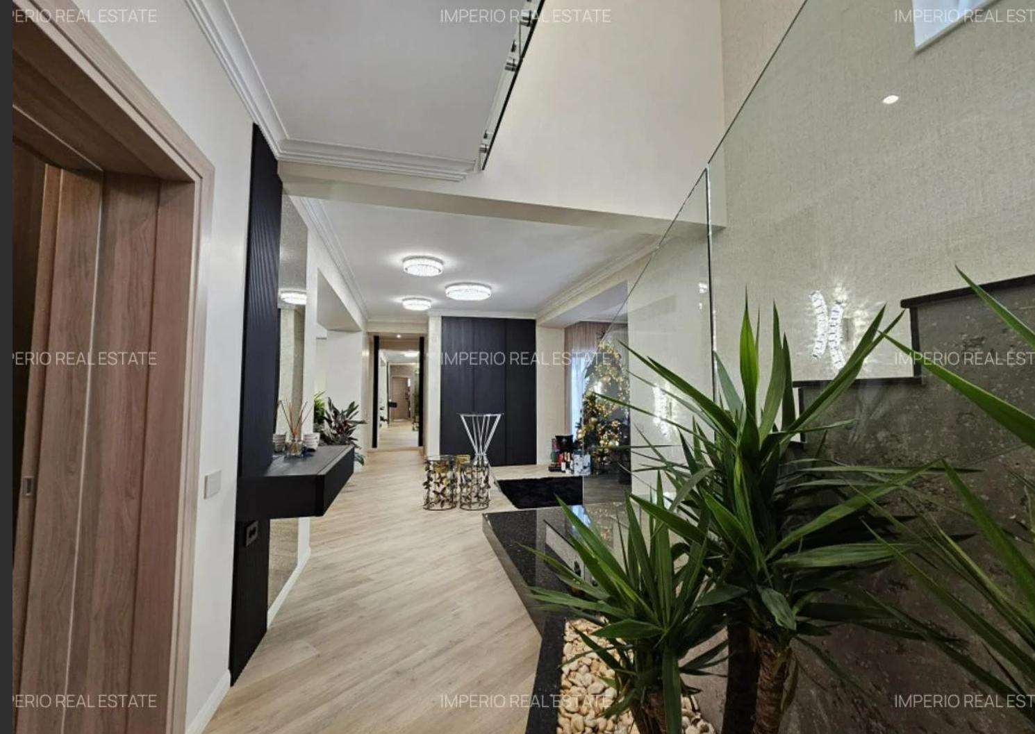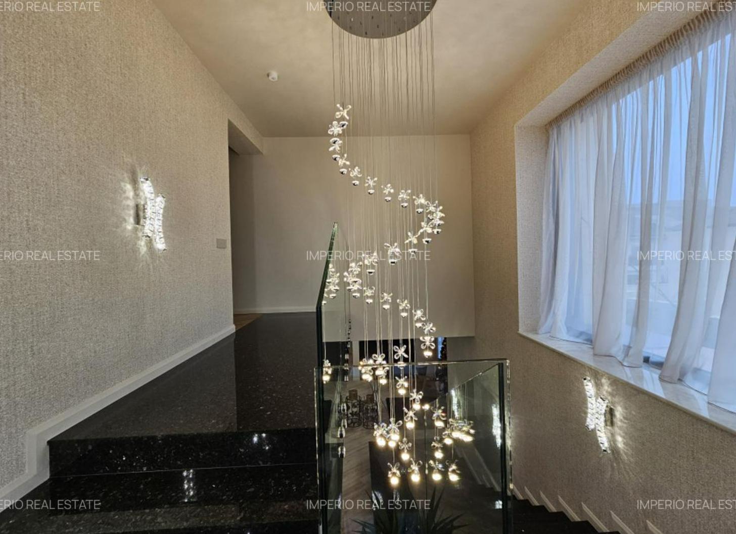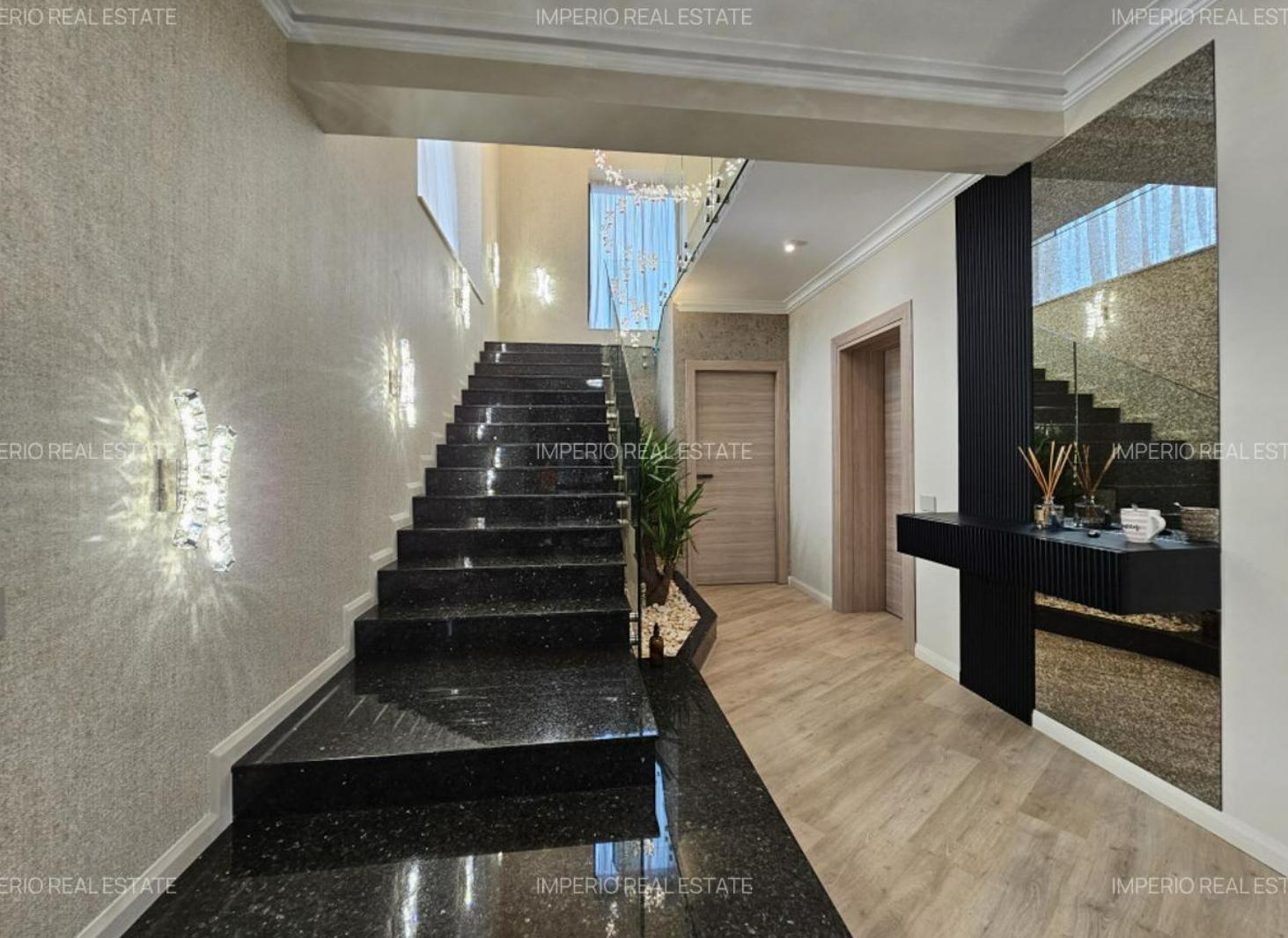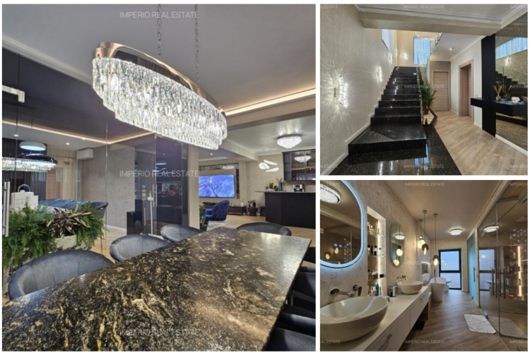 Casa este gândită pentru a oferi un stil de viață de înaltă clasă. Parterul cuprinde un living generos, o bucătărie ultra-modernă, un dormitor cu baie privată și o baie de serviciu. La etaj, dormitorul matrimonial impresionează prin lux, având o baie dubla și trei dressinguri, iar un alt dormitor cu baie proprie și o cameră de oaspeți completează spațiul. Demisolul include un dormitor confortabil, o baie, o cameră tehnică și o spălătorie.