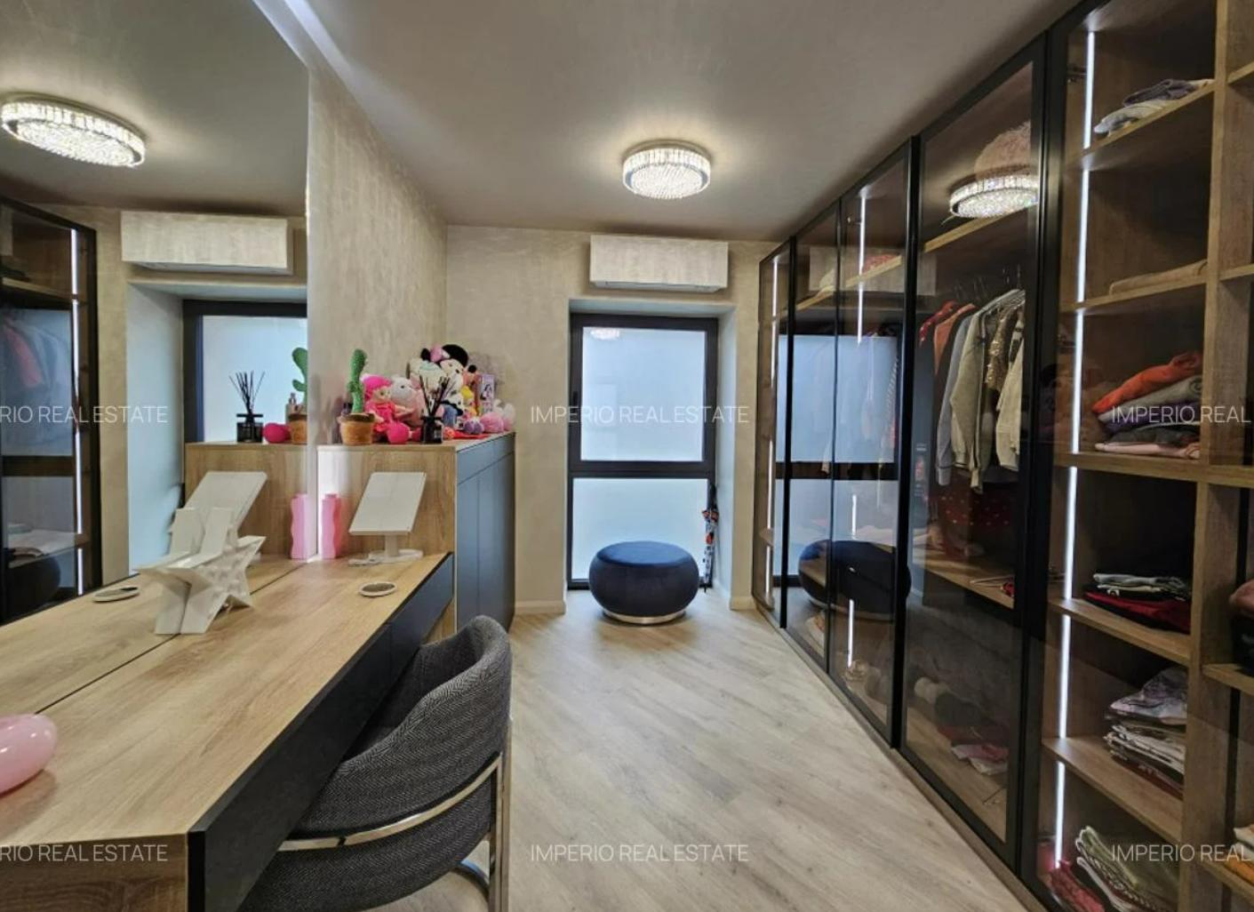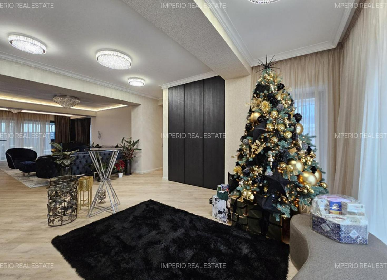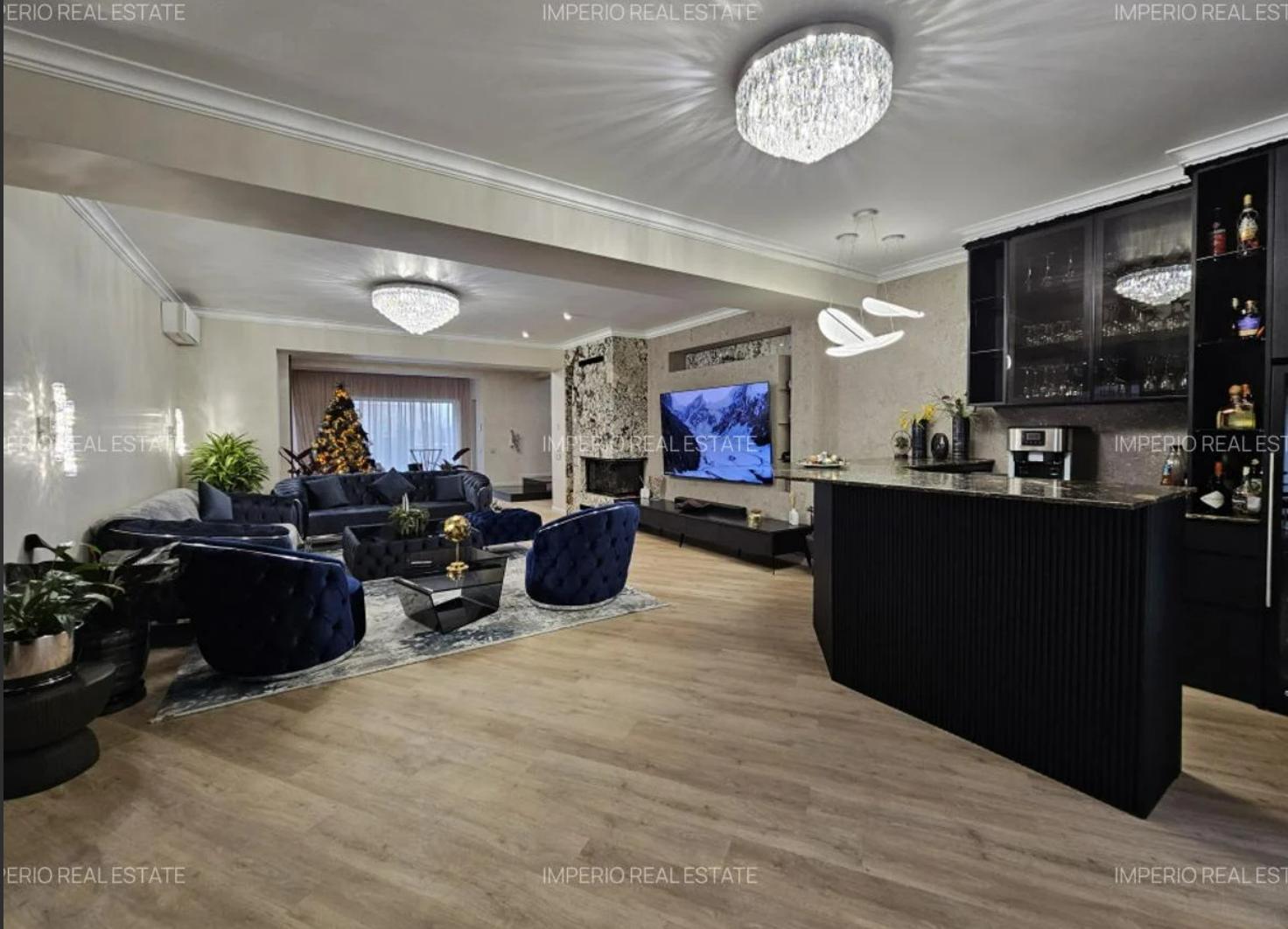 Casa este gândită pentru a oferi un stil de viață de înaltă clasă. Parterul cuprinde un living generos, o bucătărie ultra-modernă, un dormitor cu baie privată și o baie de serviciu. La etaj, dormitorul matrimonial impresionează prin lux, având o baie dubla și trei dressinguri, iar un alt dormitor cu baie proprie și o cameră de oaspeți completează spațiul. Demisolul include un dormitor confortabil, o baie, o cameră tehnică și o spălătorie.