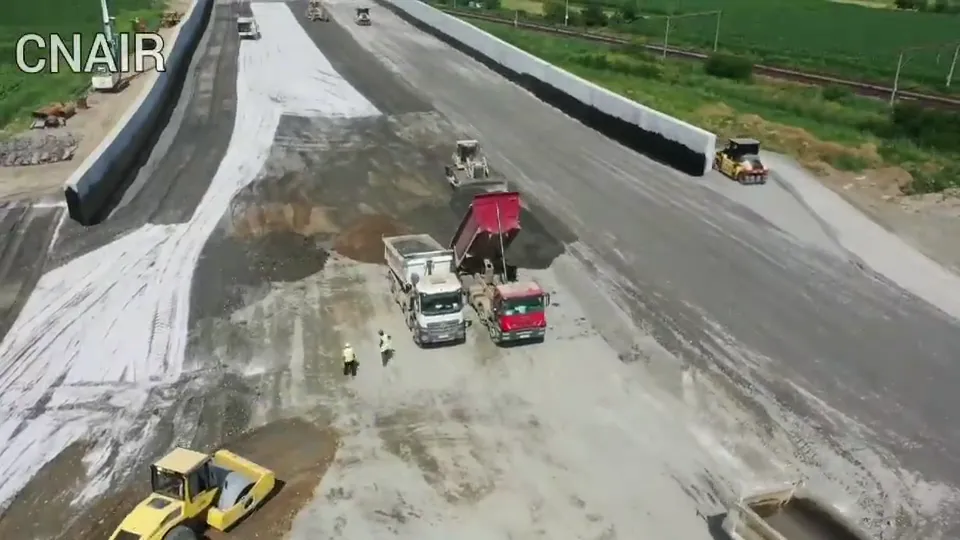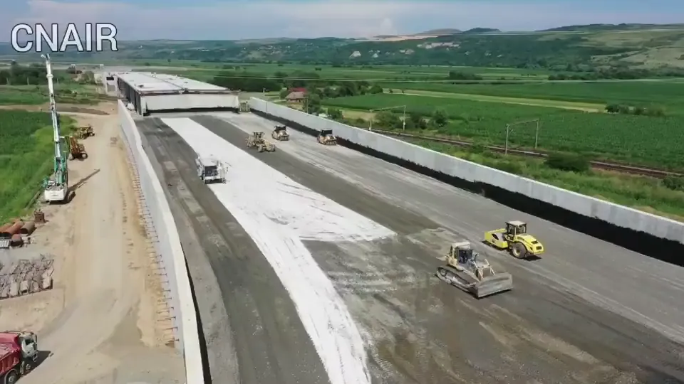 ”Antreprenorul autostrăzii Sebeș-Turda Lot 2 execută umpluturi în dreptul structurii de sprijin din beton armat, cu fundare indirectă, pe un rând de coloane forate, de la kilometrul 26 al autostrăzii.