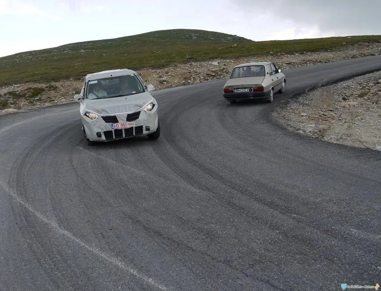 Fotografiile au fost realizate pe Drumul National 67 C - Transalpina, iar imaginea a fost surprinsa cand monovolumul Dacia trecea pe langa o berlina 1310 "clasica", scrie money.ro.