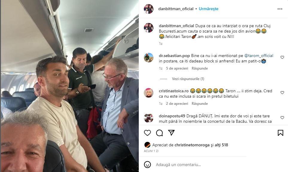 ”După ce că au întârziat o oră pe ruta Cluj – București, acum caută o scară ca să ne dea jos din avion. Felicitări Taron. Am scris voit cu N”, a scris revoltat artistul pe Instagram.