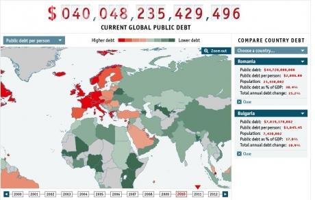 Datele prezentate de aplicatia lansata de The Economist sunt cele mai recente si reprezinta datoriile acumulate de guvernele statelor lumii, dar si raportarea acestora la produsul intern brut al fiecarei tari.