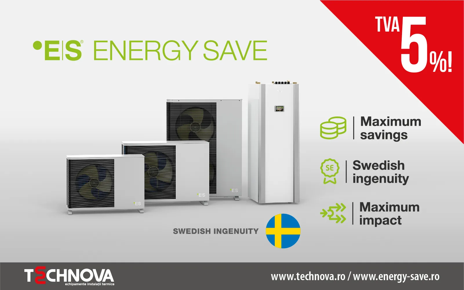 Reducerea TVA-ului la 5% și serviciile specializate de montaj și service reprezintă avantaje semnificative pentru utilizatorii de pompe de căldură Energy Save - Suedia
