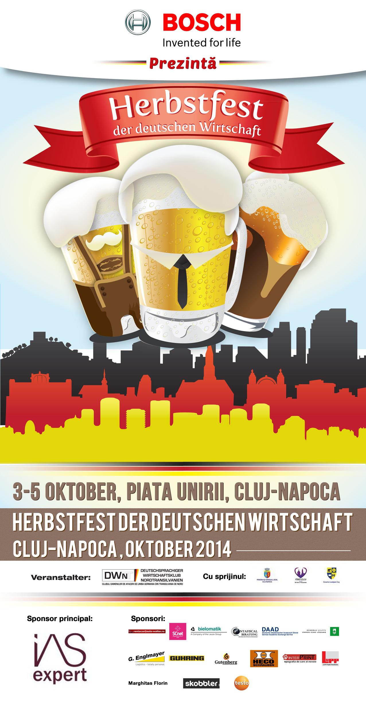 Herbstfest, Festivalul de Toamnă al Economiei Germane este prezentat de Bosch și organizat cu sprijinul Clubului Oamenilor de Afaceri de Limbă Germană din Transilvania de Nord, IAS Expert, Primăriei Cluj-Napoca şi al Consiliului Judeţean Cluj.