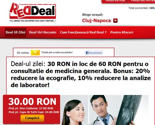 Oferta de azi de la Red Deal iti acorda o reducere de 50% la o consultatie de medicina generala la Promedical Center din Cluj. Bonus: 20% reducere la o ecografie, 10% reducere la analize de laborator.