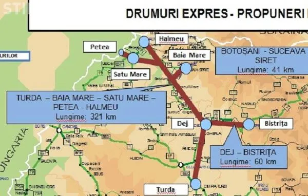 Este vorba despre drumul expres Turda - Baia Mare - Satu Mare, de 321 de kilometri. De la Dej ar urma să se realizeze o bifurcație și spre Bistrița, lungimea drumului urmând să fie de 60 de kilometri.