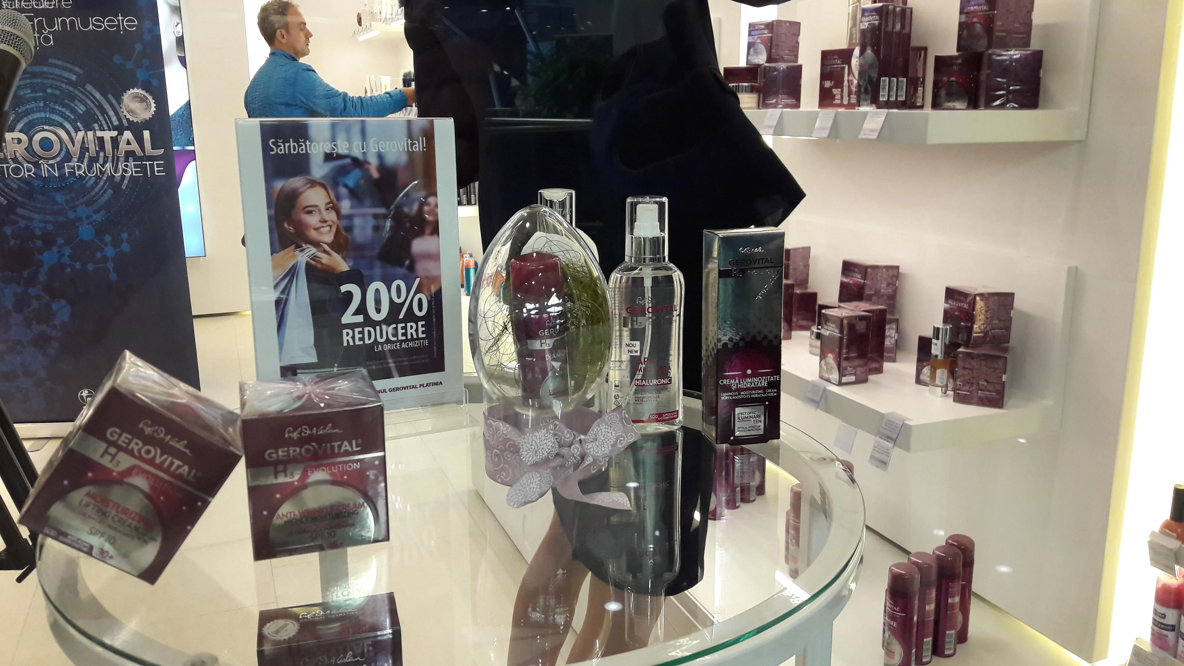 În cadrul magazinului, sunt disponibile toate produsele cosmetice din gamele Gerovital și Aslavital.