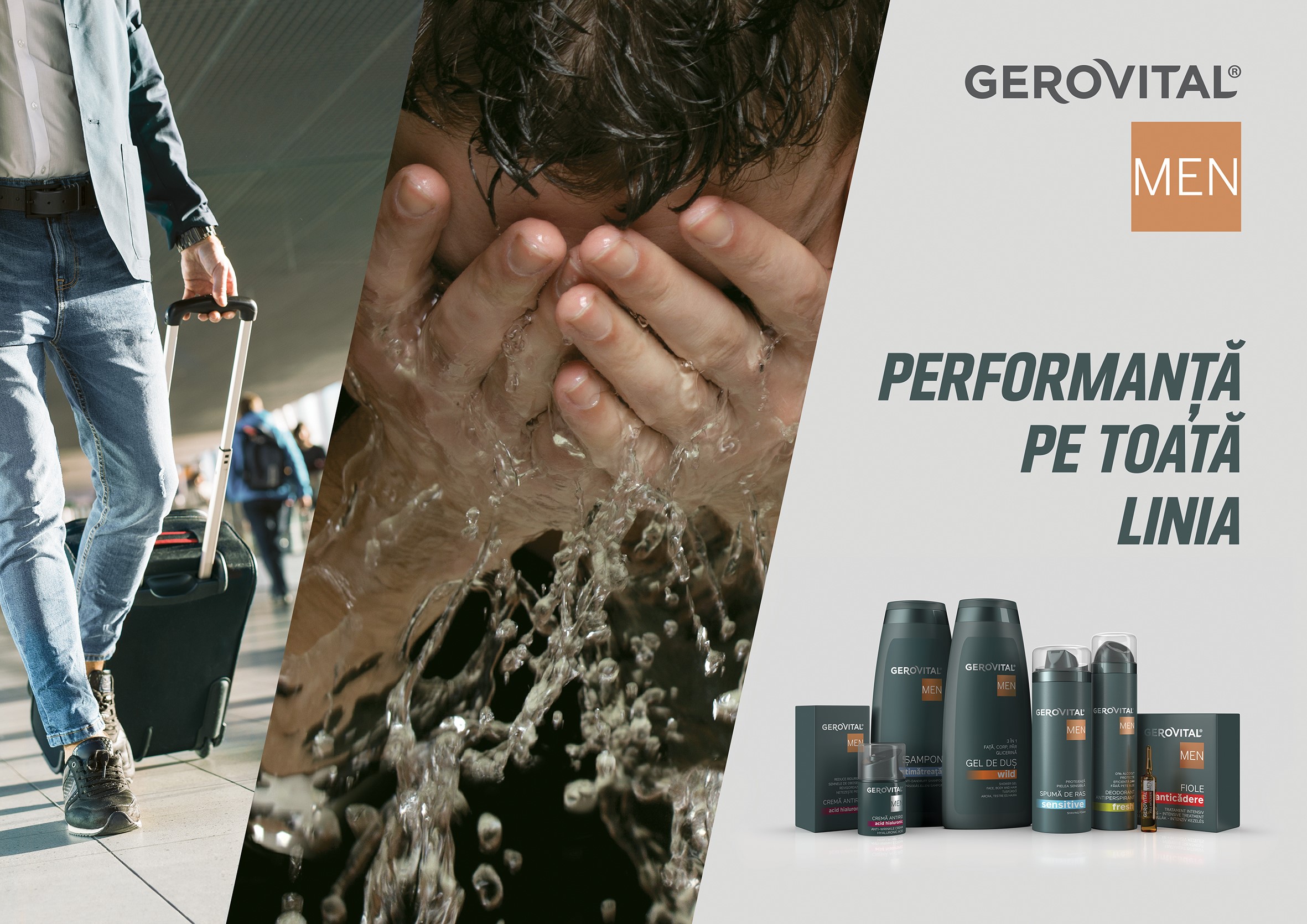 Lansată sub conceptul “Performanță pe toată linia”, Gerovital Men e gândită pentru bărbați activi, orientați spre performanță în domeniile lor, care își doresc un aspect tonic și sănătos. Produsele lansate îmbină ingredientele active, extractele vegetale și vitaminele cu acidul hialuronic.