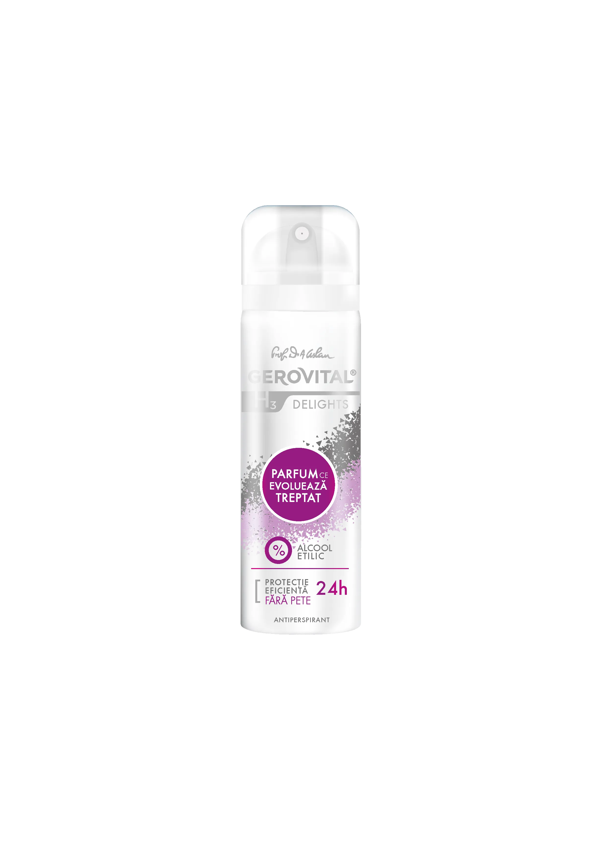 Antiperspirantul Delights Gerovital H3, creat pentru consumatoarele care preferă parfumuri sofisticate și moderne, debutează cu note proaspete, de citrice, evoluează treptat în note dulci aldehidice și se încheie cu note pudrate, lemnoase. Consumatoarele care iubesc mai mult parfumurile delicate, discrete și elegante pot opta pentru antiperspirantul Memories Gerovital H3, al cărui parfum debutează cu note fructate-condimentate, se transformă în note heliotrope, iar spre final se fixează notele pudrate, vanilate. Antiperspirantul Dreams Gerovital H3 este opțiunea ideală pentru consumatoarele care aleg parfumurile aromatice, debutând cu note fructate-verzi, ce evoluează în note florale-albe și se încheie în note de ambră și mosc.