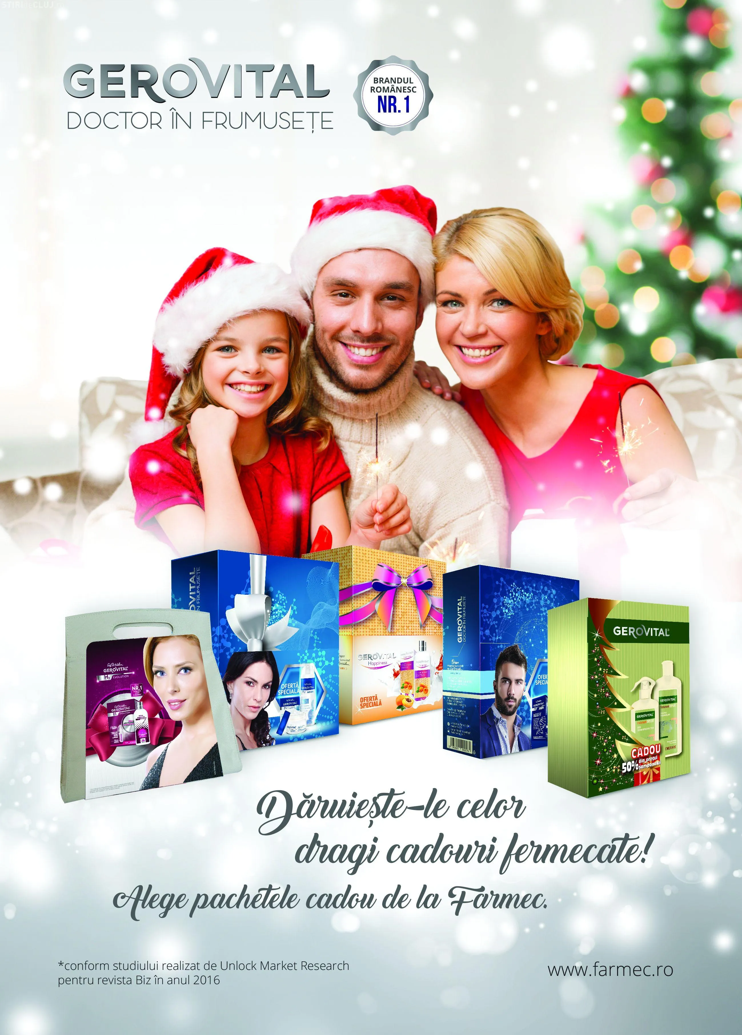 “Gerovital este cel mai puternic brand românesc, iar aceasta putere ii este data in primul rand de consumatori, care au incredere in produse si eficienta lor si le recomanda la randul lor prietenilor. Sarbatorile de iarna sunt un bun prilej pentru noi de a le rasplati fidelitatea printr-o oferta variata de casete si borsete prin care pot beneficia atat de discounturi substantiale la produsele preferate cat si de produse oferite cadou” a declarat Ioana Borza, Director de Marketing Farmec.