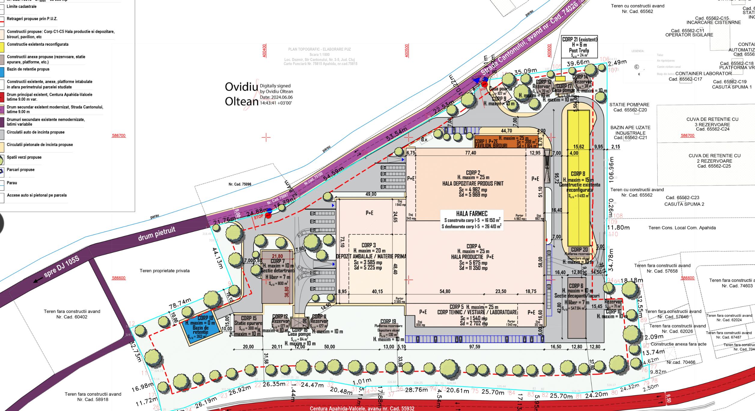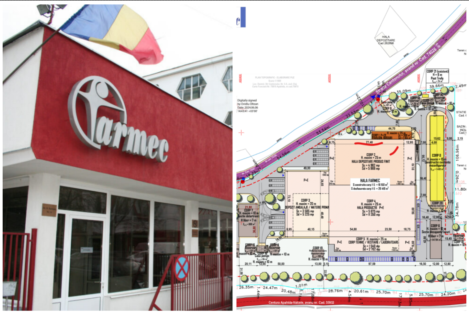 Noua platformă industrială Farmec va fi amplasată pe un teren de 53.336 mp, situat pe Strada Cantonului nr. 3-5, Dezmir. Conform memoriului întocmit în mai 2024, proiectul presupune: