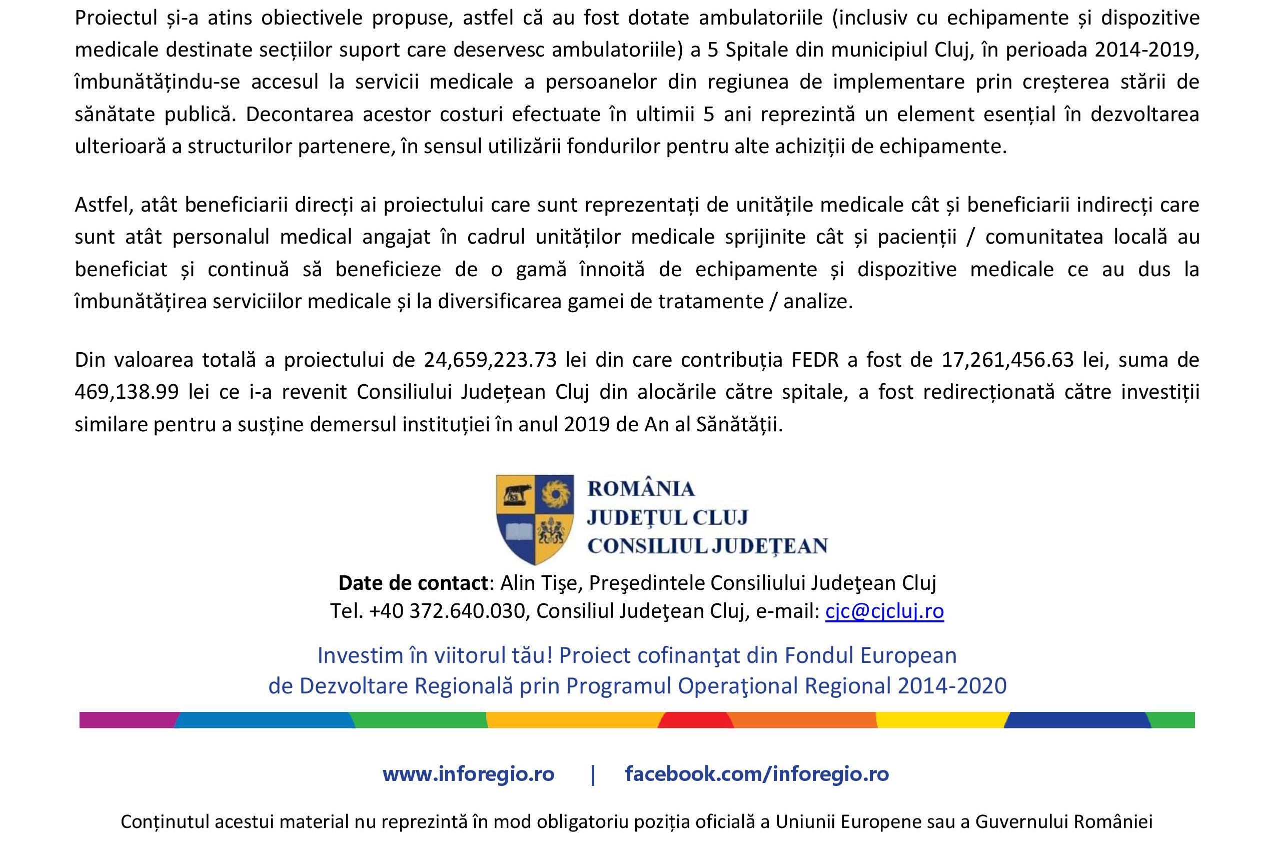 Finalizarea proiectului ASIGURAREA ACCESULUI LA SERVICII DE SĂNĂTATE ÎN REGIM AMBULATORIU PENTRU POPULAȚIA JUDEȚULUI CLUJ