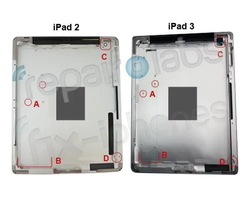 O fotografie cu partea din spate a carcasei viitorului iPad 3 a fost facuta publica de site -ul RepairLabs.