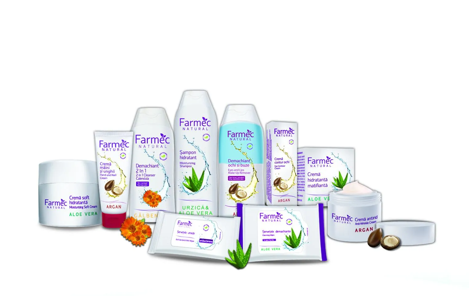 Lansată în primăvara acestui an, gama Farmec Natural conține produse pentru îngrijirea tenului și a corpului, precum și produse destinate îngrijirii părului, bazate pe ingrediente naturale precum extractul de gălbenele, aloe vera și ulei de argan, acoperind nevoile fiecărui tip de ten.