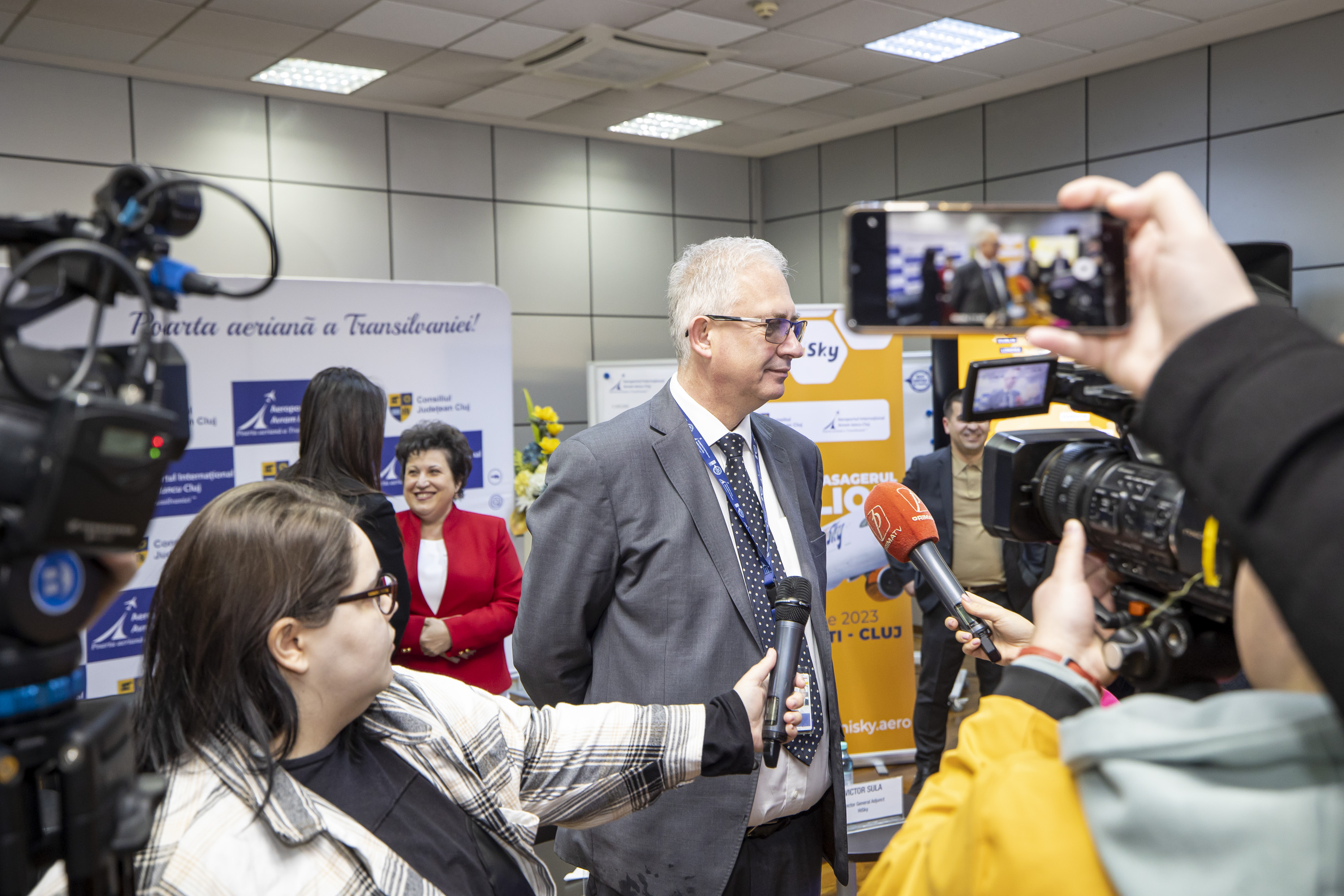 Alături de reprezentanții HiSky, au fost prezenți la eveniment și reprezentanți ai conducerii Aeroportului Internațional Cluj.