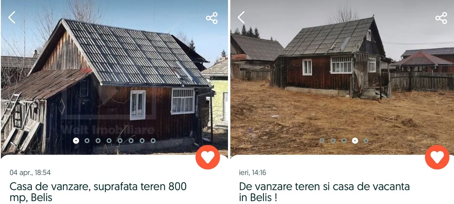 Pe OLX, o agenție imobiliară a postat în termen de 10 zile două proprietăți din Beliș cu prețuri diferite. Fără niciun motiv, prețurile au crescut de la 45.000 la 50.000 sau de la 40.000 la 50.000.