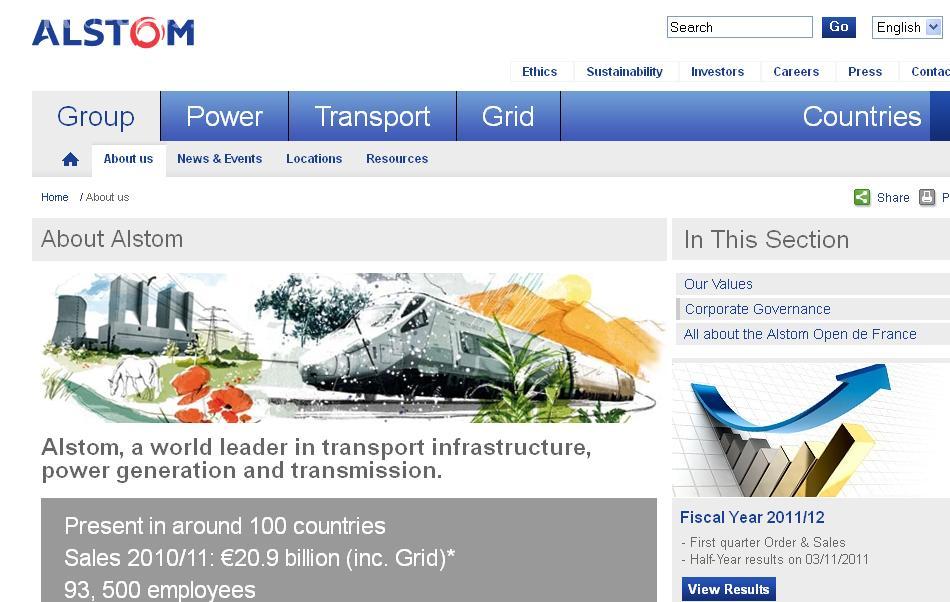 Compania Alstom se lauda cu o cifra de afaceri in 2010/2011 de 20,9 miliarde de euro si 93.500 de angajati.