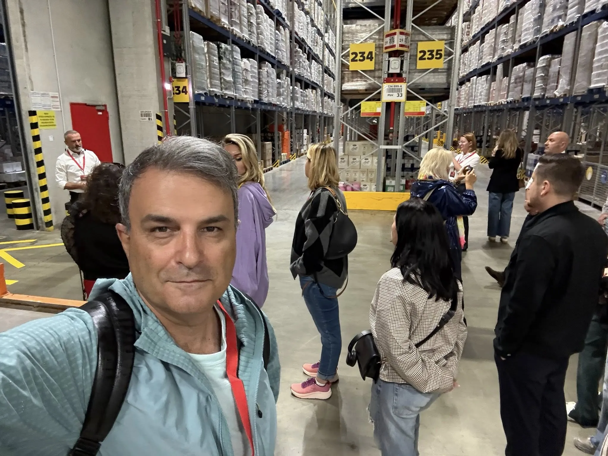 „În fine, despre altceva e vorba. Despre ce m-a impresionat aici. Sunt multe lucruri, hale uriașe cât o salină, mașinării de stocat paleți cu 10-11 etaje (da, urcă paleții la înălțimea unui bloc, e incredibil).
