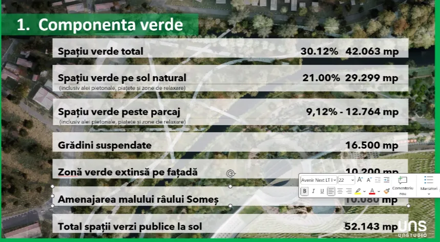 ”Față de discuțiile de data trecută am făcut o analiză a tuturor imobilelor din incinta industrială, împreună cu arhitectul Szabolcs Gutttman, expert în patrimoniu. Acest studiu nu a relevat alte clădiri cu valoare ambientală decât cele pe care le-am propus să fie păstrate. Legat de zona de maluri, împreună cu inginerul Vlasin Horea din cadrul Universității de Științe Agricole și Medicină Veterinară am făcut un studiu privind vegetația de pe amplasament. S-au inventariat, la nivelul incintei, 127 copaci care urmează să fie relocați în pepiniera USAMV și ulterior replantați. Pe malurile actuale care au o fâșie îngustă de vegetație, există 363 exemplare din care 215 vor fi propuși spre eliminare. Este vegetație degradată, crescută pe zidurile de apărare ale râului și în fundațiile acestora. Din punct de vedere al Apelor Române aceasta nu poate rămâne. În acest moment, avem 600 de copaci pentru acest proiect și sunt deja în Cluj-Napoca, pregătiți pentru proiect. Toată lumea îi poate vedea. Va fi un concert de Jazz în pepiniera USAMV, la care oamenii sunt invitați. Cred că este o situație unică în Cluj când există o relaționare de o asemenea anvergură cu un spațiu verde din oraș”, a punctat arhitectul Vlad Negru, de la biroul Trans Form.