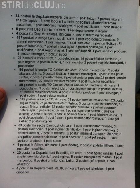 283 de posturi sectiile TO-Cabluri si TO