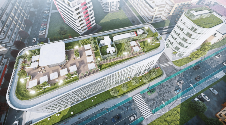 Toate imobilele vor avea acoperișuri înierbate, iar pe acoperișul clinicii medicale va fi o terasă de alimentație publică, deci tot o chestiune comercială, nimic pentru comunitate. Vor fi create 131 de locuri de parcare auto, care vor fi folosite de cei care frecventează spațiile private.