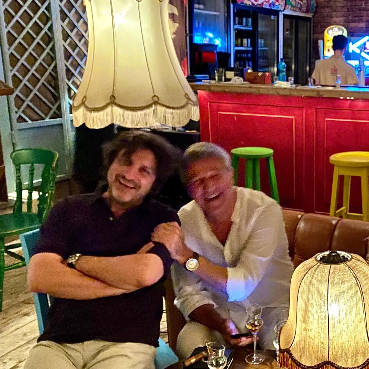 Foto: Mircea Buteanu și Dan Bittman, la Che Guevara Social Pub, în iunie 2020