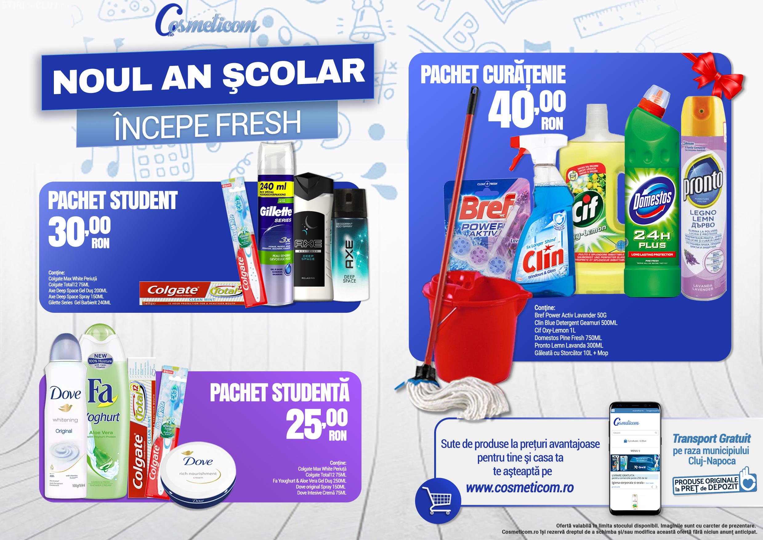 Fie că te gândești la un pachet de curățenie sau un pachet de îngrijire special pregătit și pentru studenți și pentru studente, cu siguranță le vei găsi pe toate.
