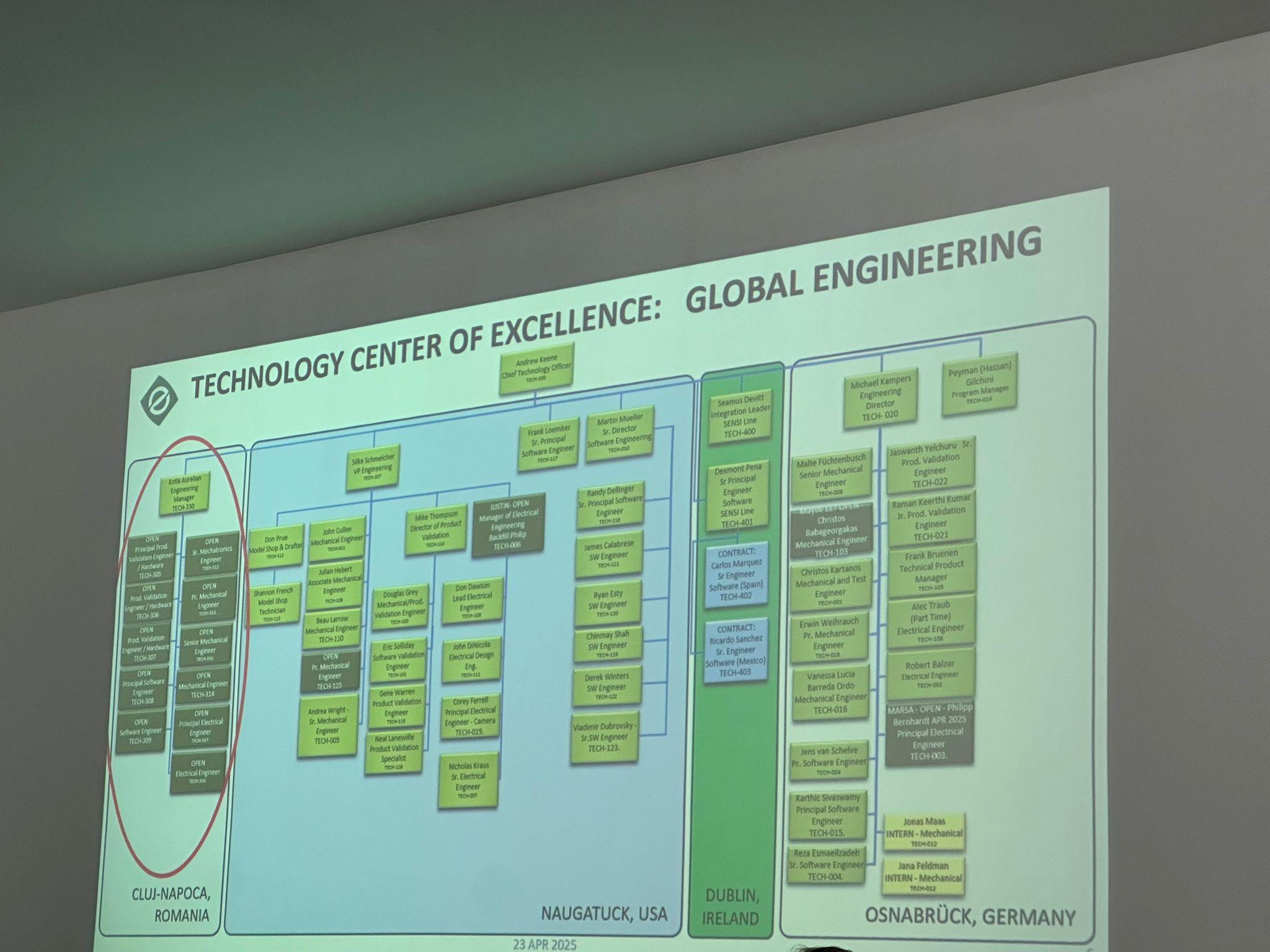 Aici vor fi angajați ingineri mecanici, ingineri electricieni, ingineri software, dar și ingineri pentru testare. Aceștia vor colabora cu ceilalți ingineri din Centrele de Excelență din Europa și SUA, muncind pentru proiecte atât locale cât și globale.