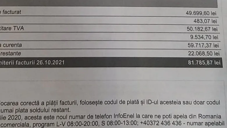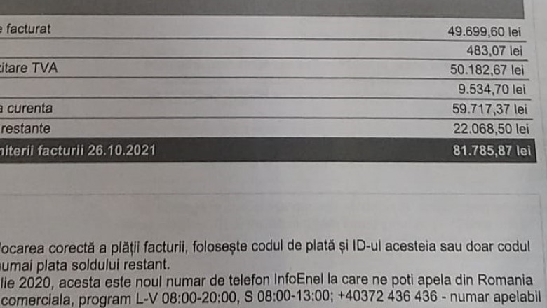 Toate cele patru facturi au fost emise în data de 26.10 2021 şi sunt scadente la data de 10.11.2021, potrivit Gazeta de Sud.