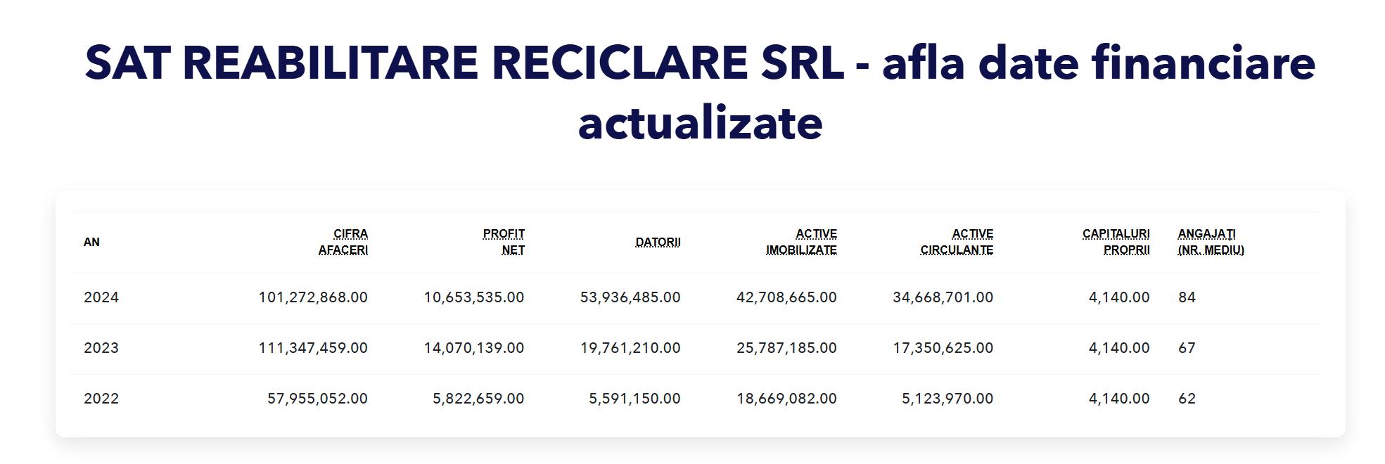 Compania cu sediul central la Cluj, fondată în 2010, este specializată în producerea și distribuirea de emulsii bituminoase și alte materiale tehnice dedicate întreținerii rutiere. Activitatea sa susține atât sectorul public, cât și operatorii privați din domeniul construcțiilor de drumuri. Deținută integral de Strabag, SAT Reabilitare Reciclare a raportat în 2024 o cifră de afaceri de 101,272,868.00 RON ,cu un profit de 10,653,535.00 RON și 84 de angajați.