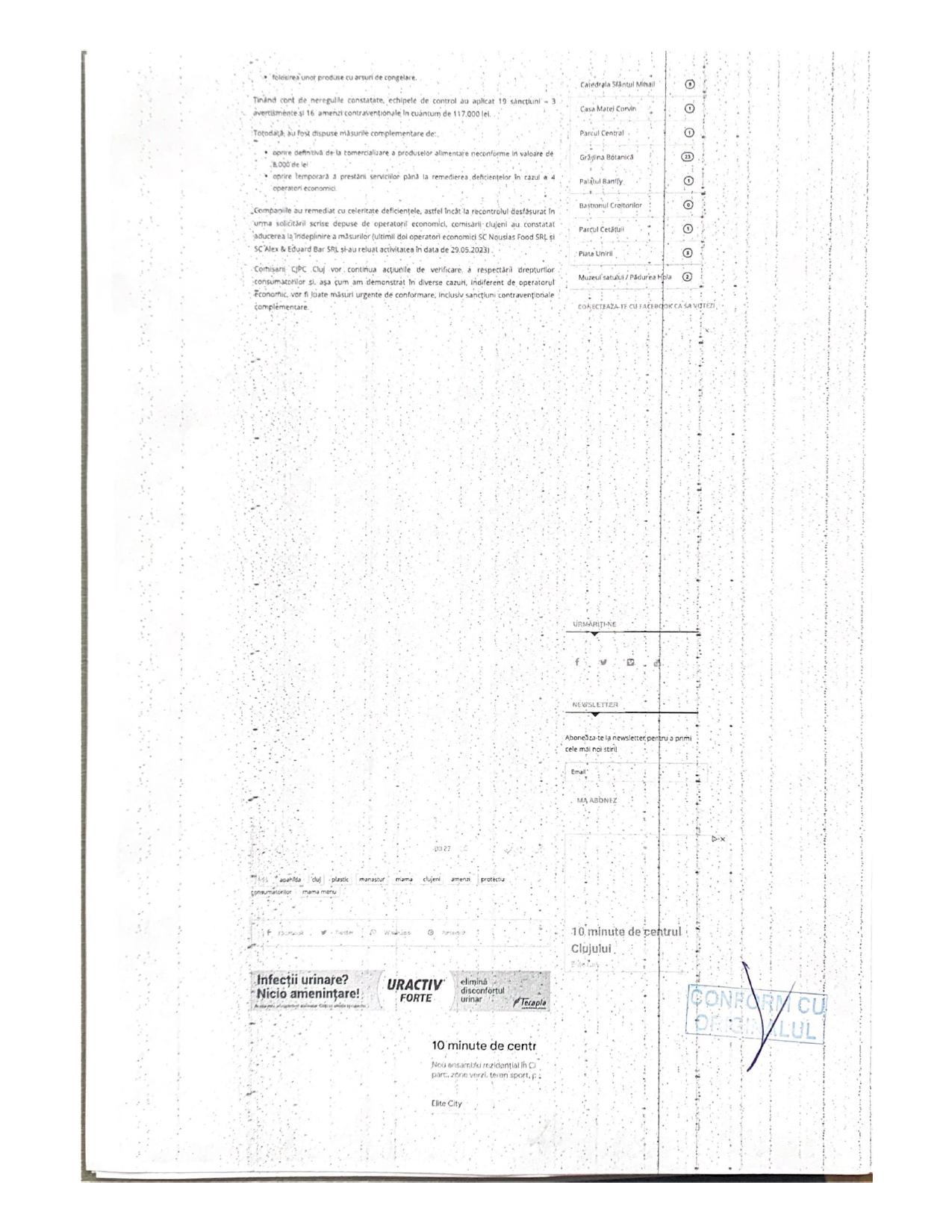 Comisarii CJPC Cluj vor continua acțiunile de verificare a respectării drepturilor consumatorilor și, așa cum am demonstrat în diverse cazuri, indiferent de operatorul economic, vor fi luate măsuri urgente de conformare, inclusiv sancțiuni contravenționale complementare.