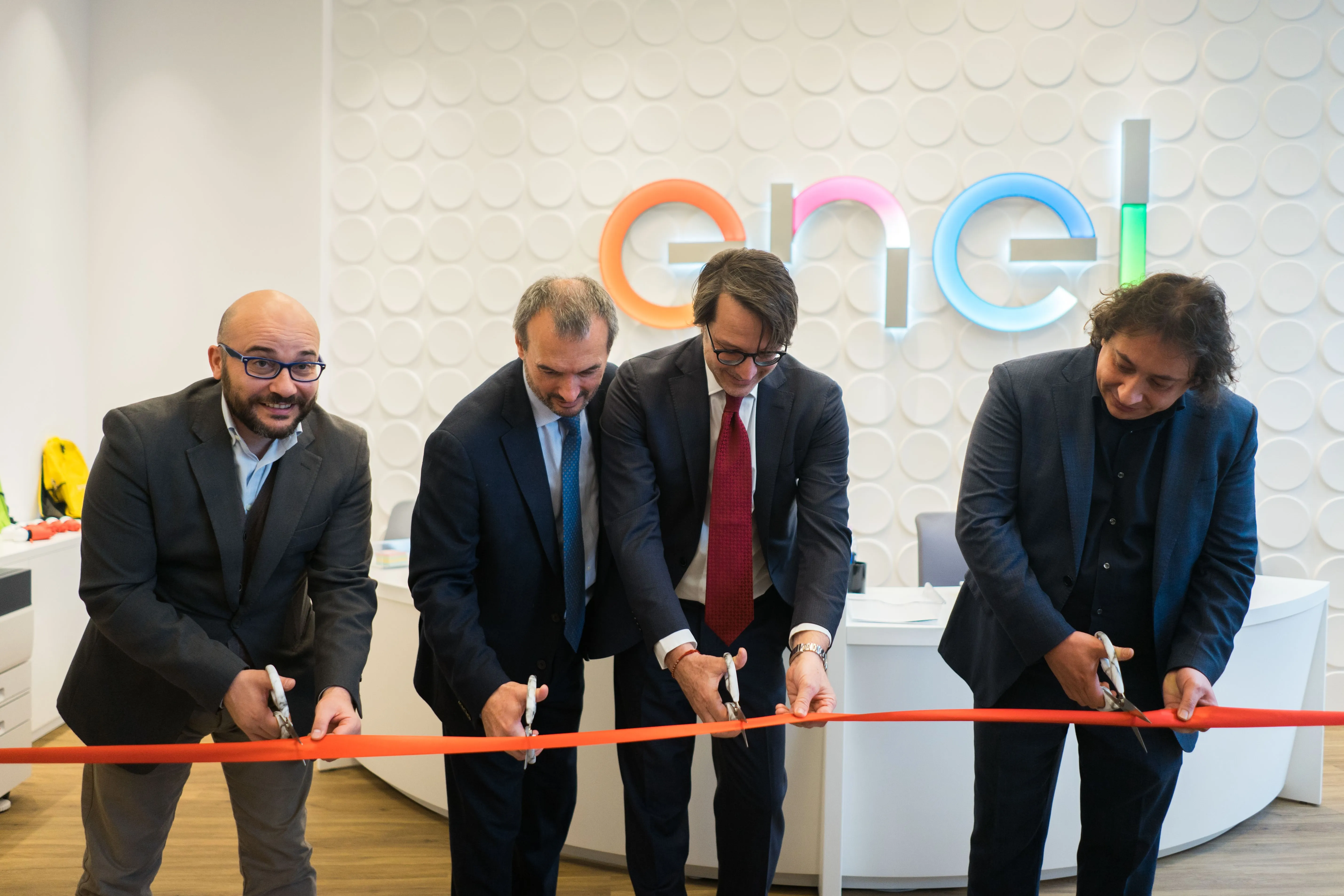 Foto de la stânga la dreapta: Luciano Sarletti (Director Vânzări indirecte Enel Energie și Enel Energie Muntenia), Carlo Pignoloni (Country Manager Enel România). Michele Abbate (Director general Enel Energie și Enel Energie Muntenia), Marco Vivattene (Director comercial Custom Service, partener Enel)