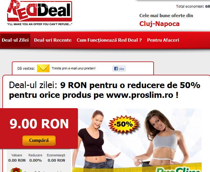 Daca nu mai sunteti multumiti de silueta Dvs, atunci este timpul sa luati urgent masuri. Vremea pentru concediu si plaja se apropie, asa ca nu mai asteptati. Timp de patru zile puteti achizitiona de pe Reddeal un cupon in valoare de 9 lei, care va ofera reduceri de 50% pentru cumparaturile pe care le faceti pe www.proslim.ro.