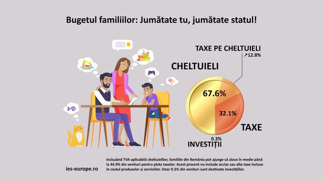 Potrivit datelor folosite de cei trei universitari, venitul mediu brut al gospodăriilor din România a fost de 6.055 lei/lună în trimestrul IV al anului trecut (2.395 lei/persoană). Din acest venit, românii cheltuiesc 67,6% pentru consum, plătesc taxe ce înseamnă aproape o treime din venit (32,1%), iar 0,3% o reprezintă investițiile. TVA aplicabil cheltuielilor gospodăriilor se adaugă la taxarea deja menționată și poate ajunge să reprezinte încă 12,8% din veniturile totale ale unei gospodării, ceea ce duce povara fiscală totală a gospodăriei medii românești la 44,9%. Potrivit Institutului Național de Statistică, cel mai mare procent din cheltuielile medii ale gospodăriei, 32,3%, este reprezentat de alimente și băuturi nealcoolice. Urmează costurile locuinței, inclusiv încălzire, electricitate și apă curentă (16,3%).