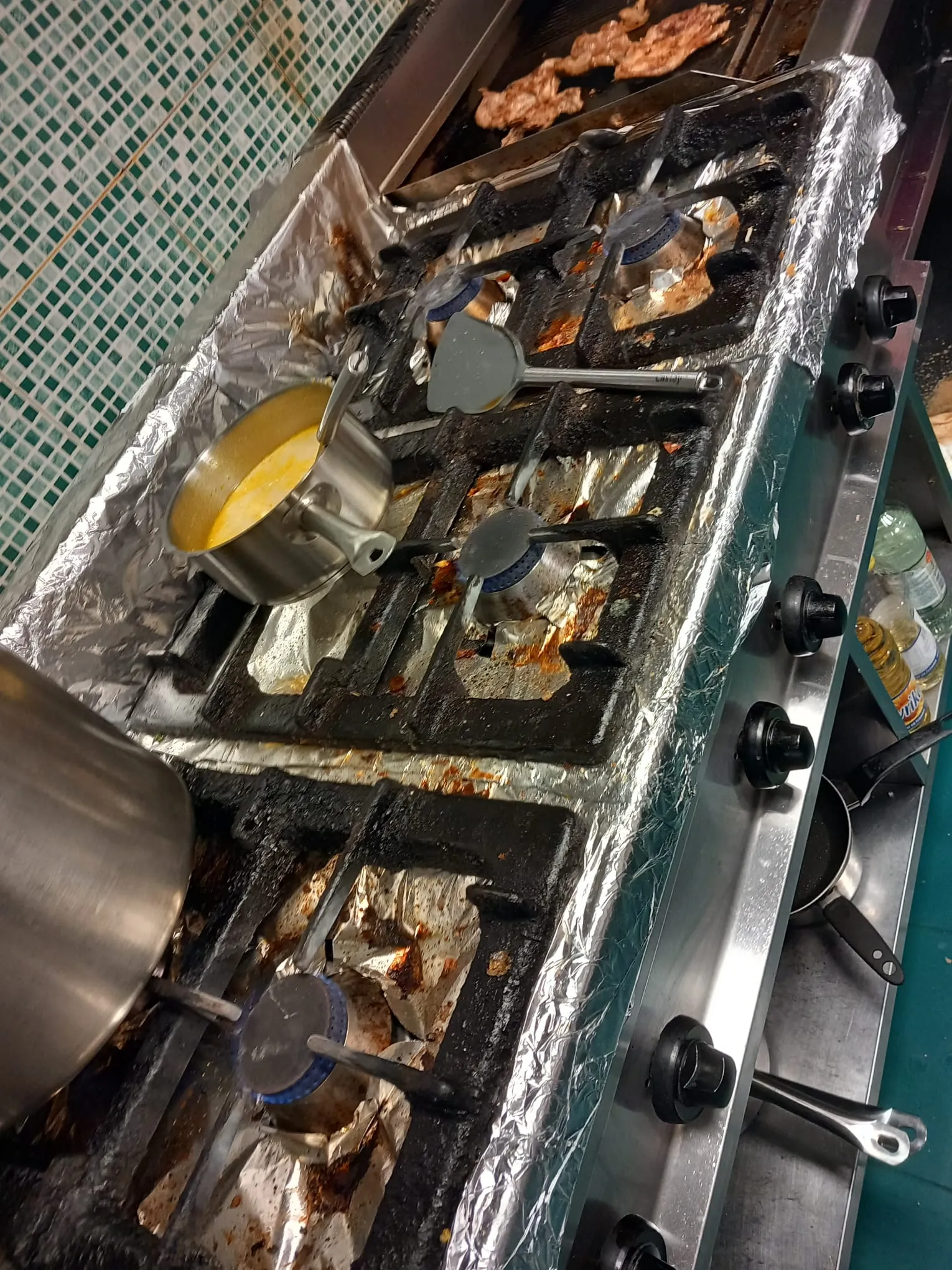 condiții improprii de lucru în spațiul aferent blocului alimentar (cu pereții înnegriți de fum, filtrele hotelor îmbâcsite de grăsime,
