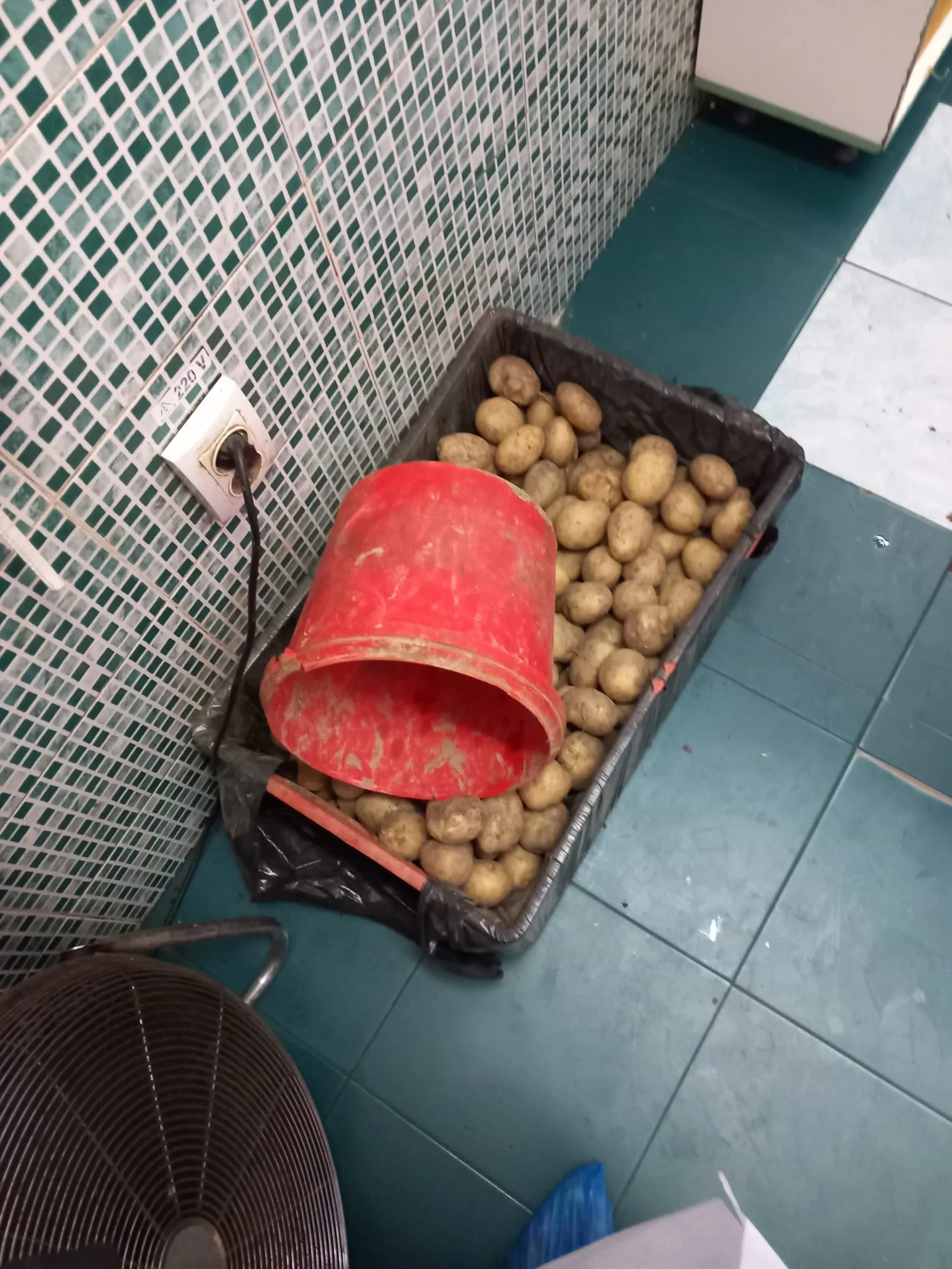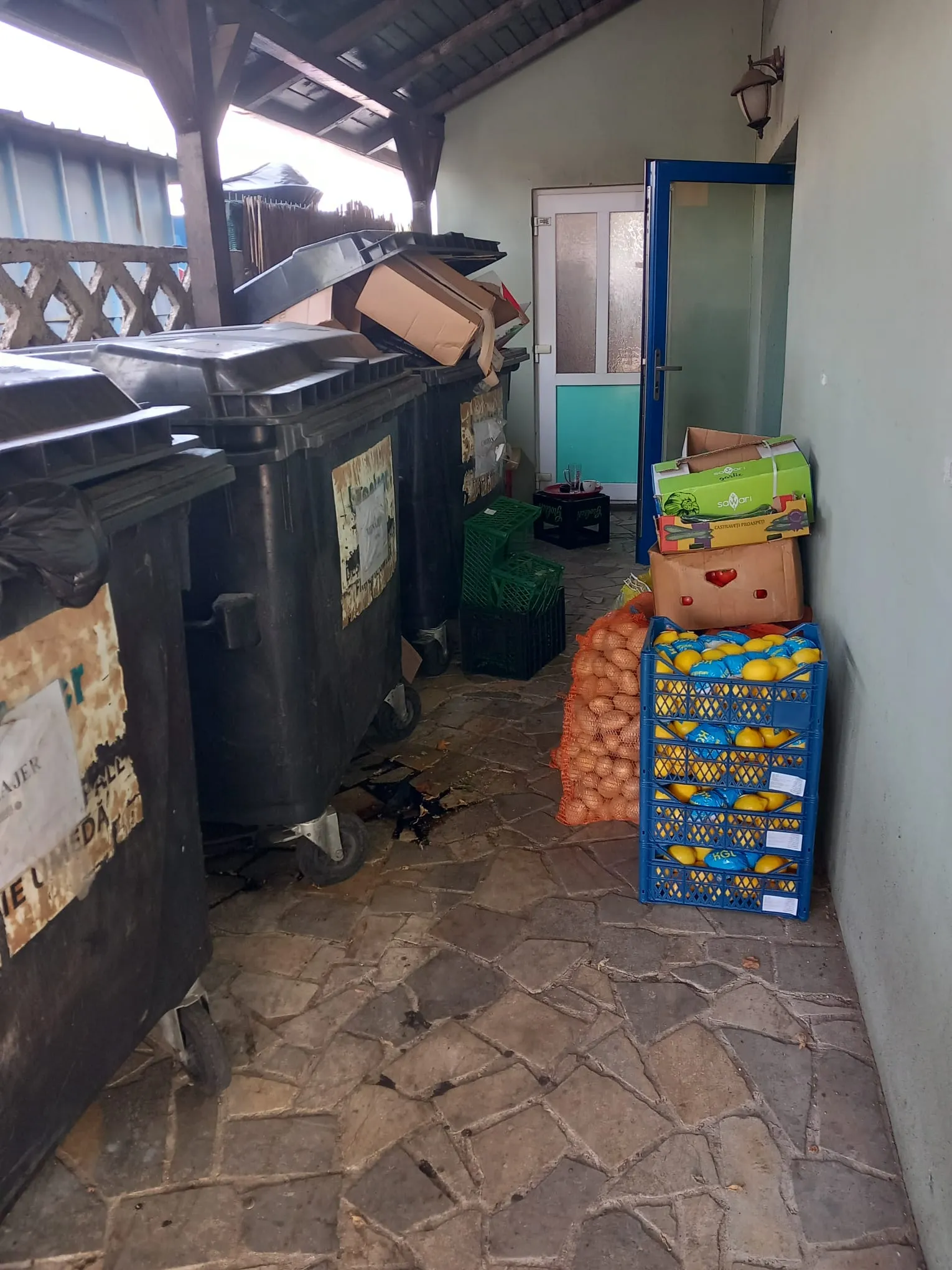 depozitarea direct pe paviment a produselor alimentare( lăzi de paine, fructe și legume) lângă tomberonul de gunoi