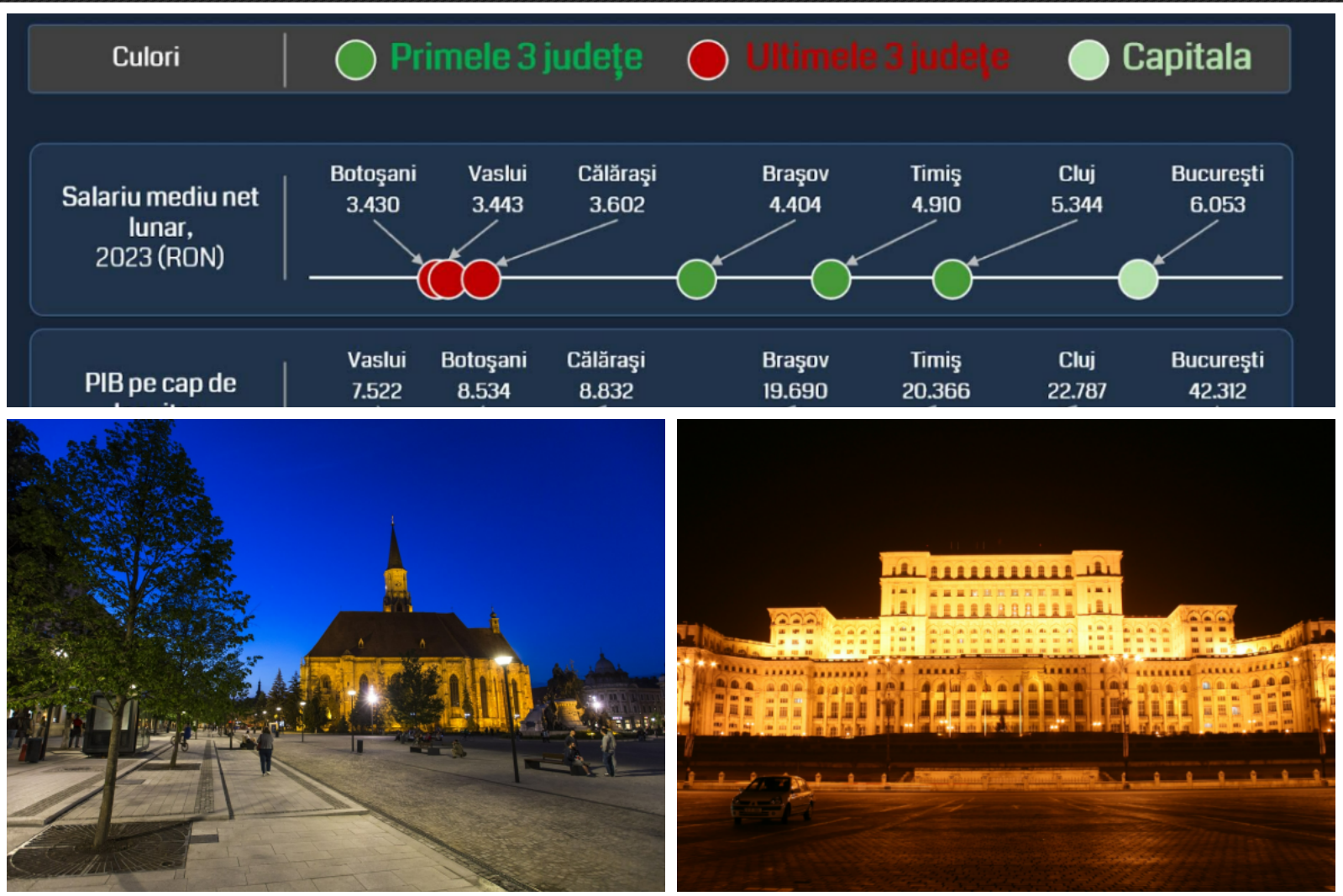 Acest model de dezvoltare creează dificultăți în gestionarea politicilor guvernamentale de redistribuire a resurselor și influențează semnificativ percepțiile cetățenilor despre echitate. Cercetătorii RoEM au realizat acest clasament pe baza mai multor indicatori din 2023, inclusiv PIB-ul pe cap de locuitor, investițiile străine directe pe cap de locuitor, bugetul reședinței de județ pe cap de locuitor, numărul de întreprinderi active la mia de locuitori și salariul mediu net lunar.
