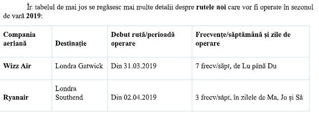 În sezonul de vară 2019, ca parte a planurilor de dezvoltare a operaţiunilor sale pe Aeroportul Internaţional Cluj, compania aeriană ultra-low-cost Wizz Air adaugă o nouă rută spre operare de pe aeroport, spre Londra Gatwick. Această a 36-a rută a companiei aeriene de pe Aeroportul Internaţional Cluj contribuie astfel, la o mai bună deservire a zborurilor spre capitala Marii Britanii, destinaţie care a înregistrat creşteri de trafic consistente în anul 2018. Noua rută va avea 7 frecvenţe săptămânale şi a debutat odată cu startul programului de vară, în data de 31 martie.
