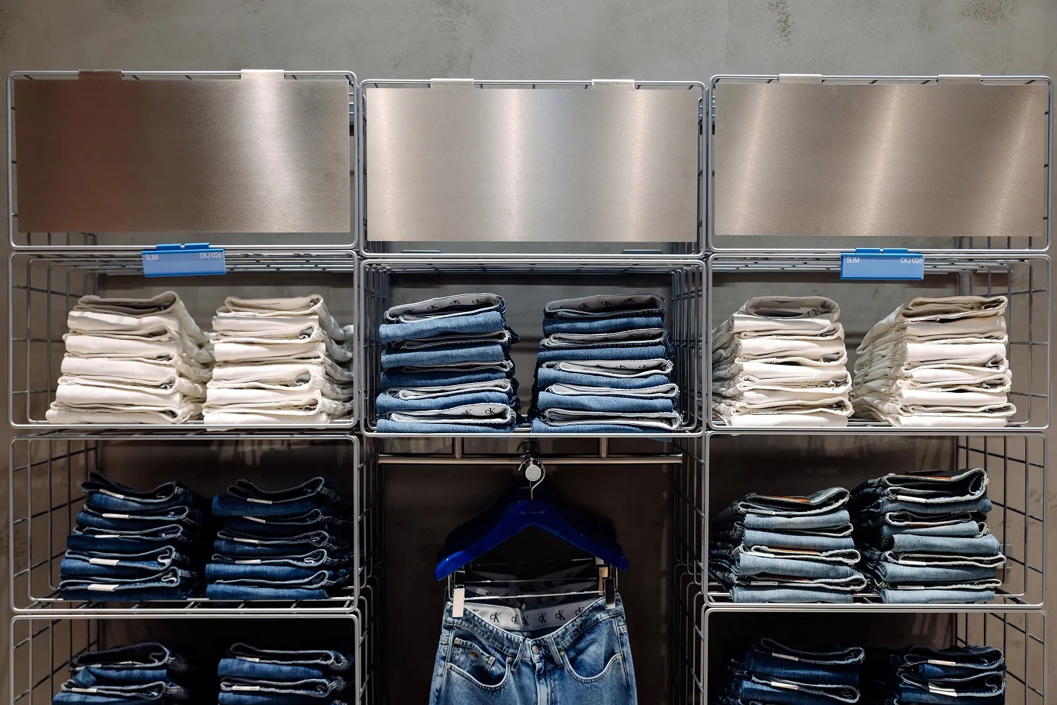 Noul magazin CALVIN KLEIN JEANS prezintă cel mai recent concept CALVIN KLEIN de design, cu o estetică modernă, minimalistă și simplă, finisaje din beton și detalii în culori pop-up atât de reprezentative pentru valorile de bază ale brandului. Un loc unde adevăratul TU iese la iveală, unde ținutele tale perfecte prind viață, aspectul tău nu dă greș, iar ideile creative își găsesc expresia.