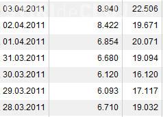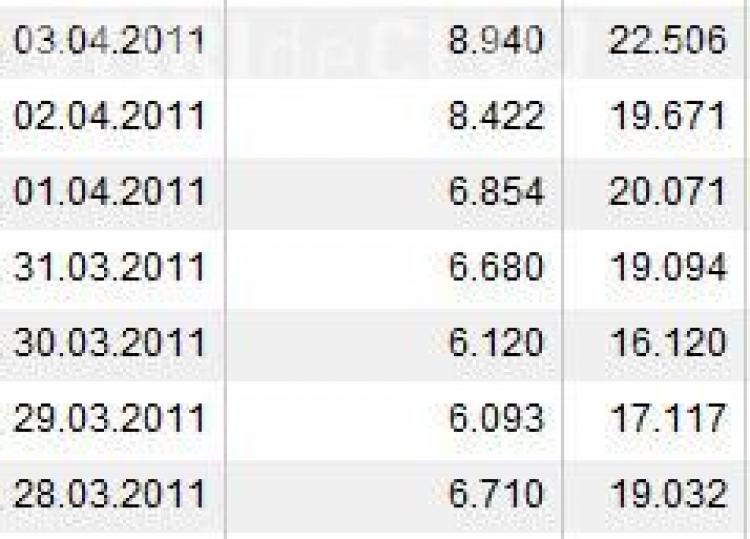Cel mai mare trafic s-a inregistrat in week-end, cand recordul de vizitatori unici a fost doborat doua zile consecutiv: sambata, 2 aprilie, s-au inregistrat 8422 de vizitatori unici, iar duminica 8940. Zilele de week-end, considerate, in general, din punct de vedere al traficului ca fiind cele mai slabe, s-au dovedit a fi unele de record pentru Stiri de Cluj.