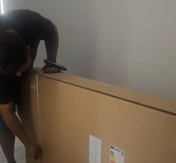 Scandal cu curierii în fața ușii: Aceștia au refuzat să intre în apartament cu televizorul OLED de mari dimensiuni și l-au desfăcut chiar în holul blocului, explicând că „așa e procedura”